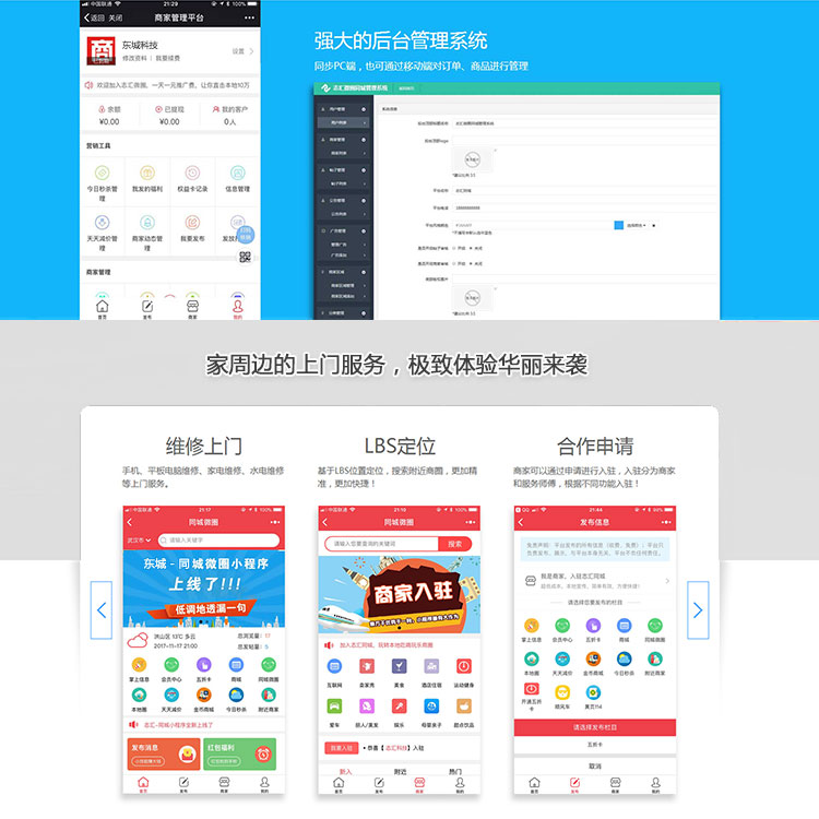 首页 >> 系统应用 >>O2O系统 >> 微圈同城营销(电脑端+手机端+ 公众号+小程序+APP)