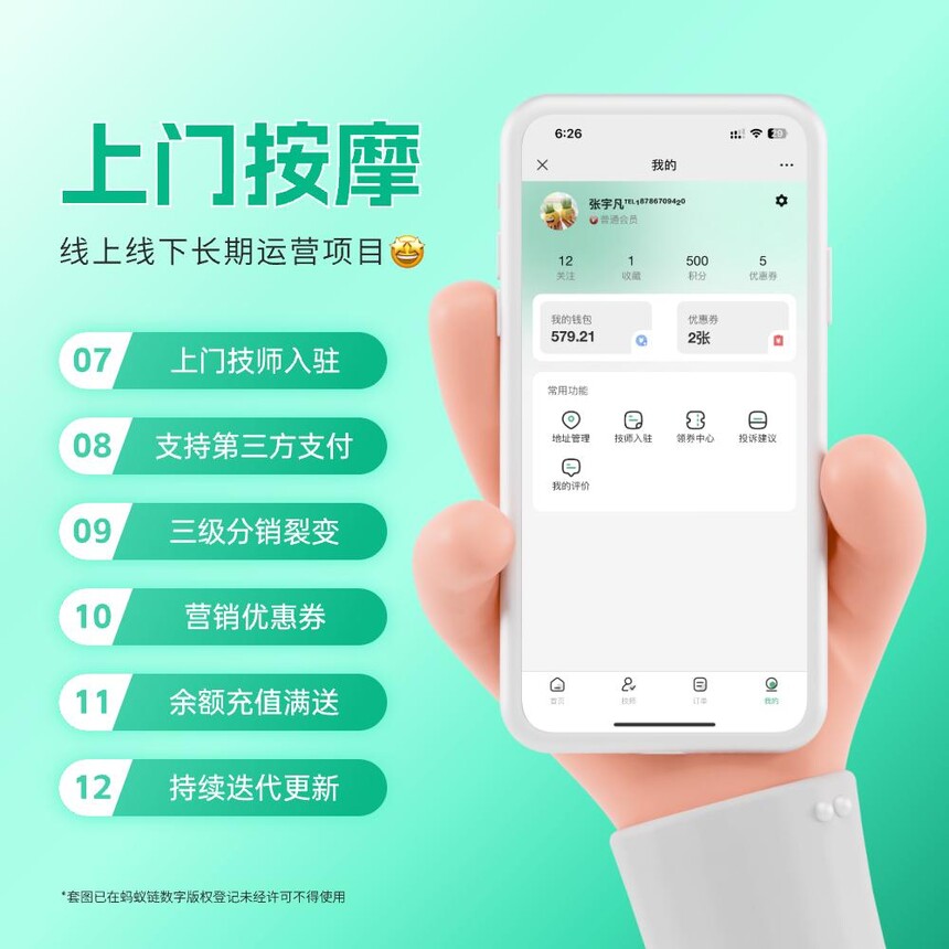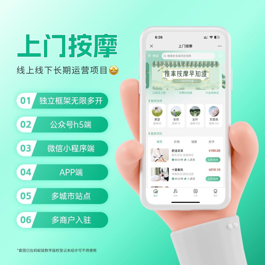 按摩疗理服务预约系统、线上线下同步运营(H5+小程序+公众号+APP)