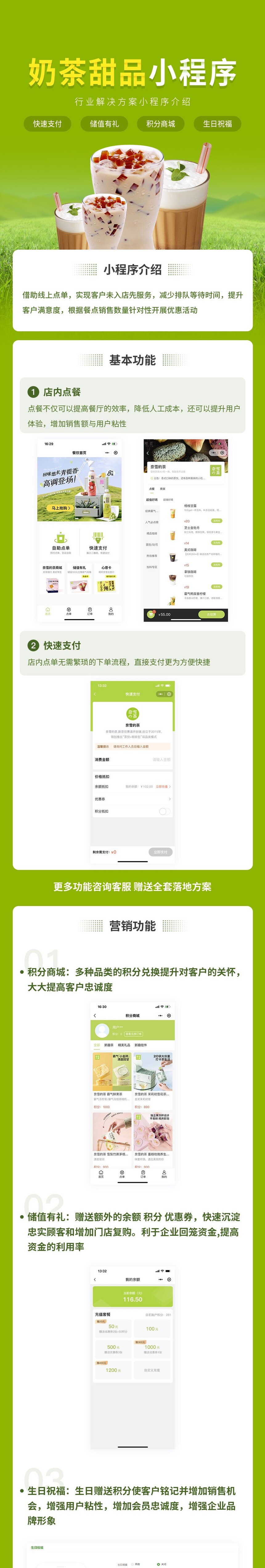 奶茶甜品小程序(快速支付、储值有礼、积分兑换、生日祝福)