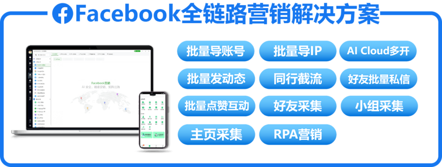 全球社交媒体营销分发AI平台 指纹安全、RPA自 动化出海、打造全球私域流量生态圈 防封保障:我们是您的Facebook等社媒业务解决方案机供商、Facebook官方通道的保障、1套软件批量管理N个Facebook等社媒平台账号、精准触达全球精准客户。 AI社媒矩阵营销整体解决方案 所有评价(0)